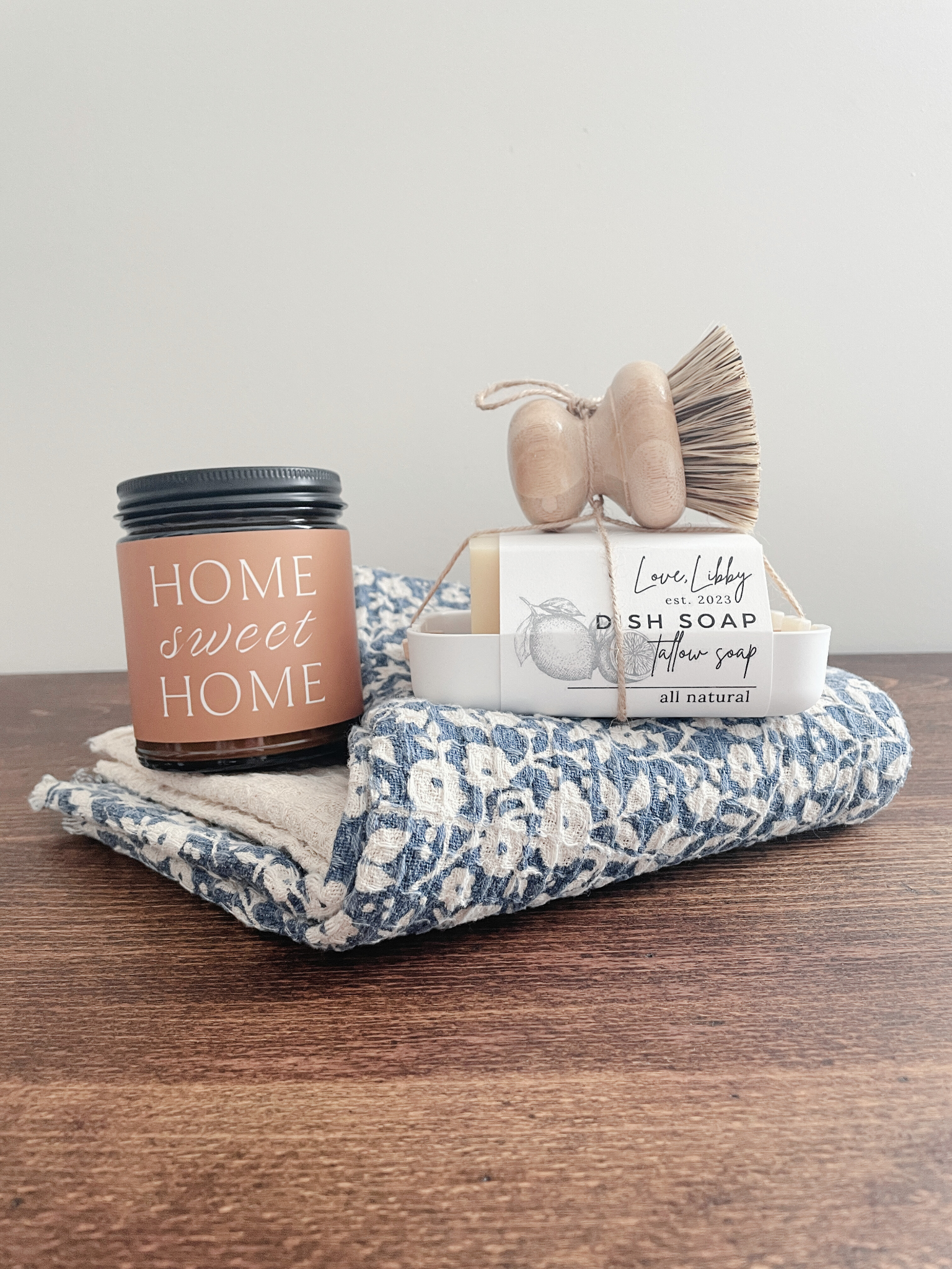 “Home Sweet Home” Candle – A hand-poured, non-toxic beeswax candle scented with essential oils that fills their new space with a welcoming glow and cozy scent.